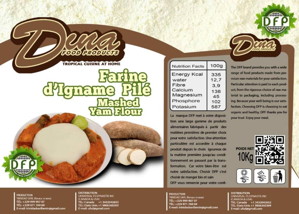 Notre farine d’igname pilé est élaborée à partir d’igname de qualité sélectionnée, soigneusement pilées pour obtenir une texture fine et légère. Naturellement sans gluten et riche en glucides complexes, notre farine d’igname pilé constitue une excellente source d’énergie durable. De plus, elle est riche en fibres alimentaires, favorisant une digestion saine et régulière. Polyvalente dans son utilisation, notre farine d’igname pilé peut être utilisée pour préparer une variété de plats traditionnels, des pains aux bouillies, offrant une expérience culinaire authentique et délicieuse.